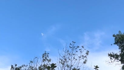 十二月中,我終於去看了這輩子影響我最深的思想家安溥,在台東鐵花村的音樂會。這是我人生的高光時刻,在聽著安溥說話的時候,我抬頭一看,樹梢被風吹著搖擺,下午的天空竟然出現了可愛的上弦月。